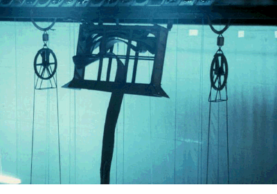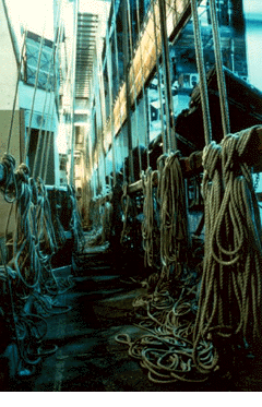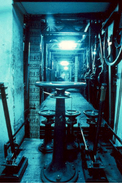 А на соседнем уровне вдруг открывается огромная НАСТОЯЩАЯ колокольня, в которой больше тридцати колоколов с уходящими в пугающую темноту веревками от языков. Прохаживаясь по верхним колосникам среди паутины тросов, канатов и цепей можно внезапно наткнуться на часть декорации к какому-нибудь спектаклю: так я случайно набрел на огромный корабельный якорь, непонятно где используемый. Интересно, что никто так и не смог мне толком объяснить где и когда его применяли в последний раз. И вообще, у меня возникло ощущение, что все хозяйство Оперы "изучено" лишь на 30-40%, а до всего остального просто руки не доходят -- можно только гадать о масштабах такой "инвентаризации".